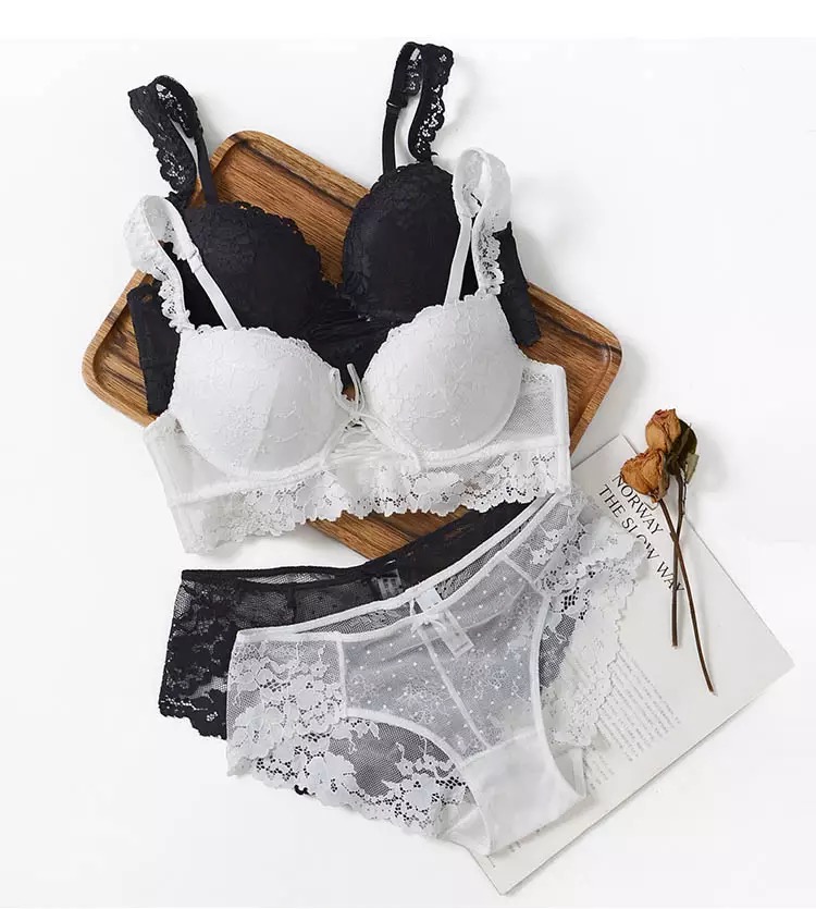 FREE SHIPPING: Embroidery Lace Hollow Brassiere Sexy Push-up Bra And Panty Lingerie Set