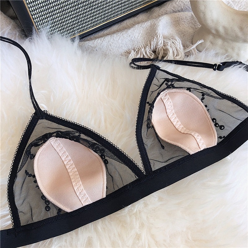 FREE SHIPPING: Floral Mesh Transparent Hollow Brassiere Sexy Push-up Bra And Panty Lingerie Set