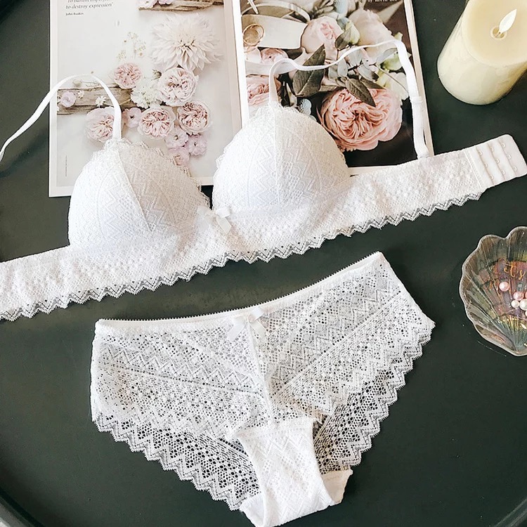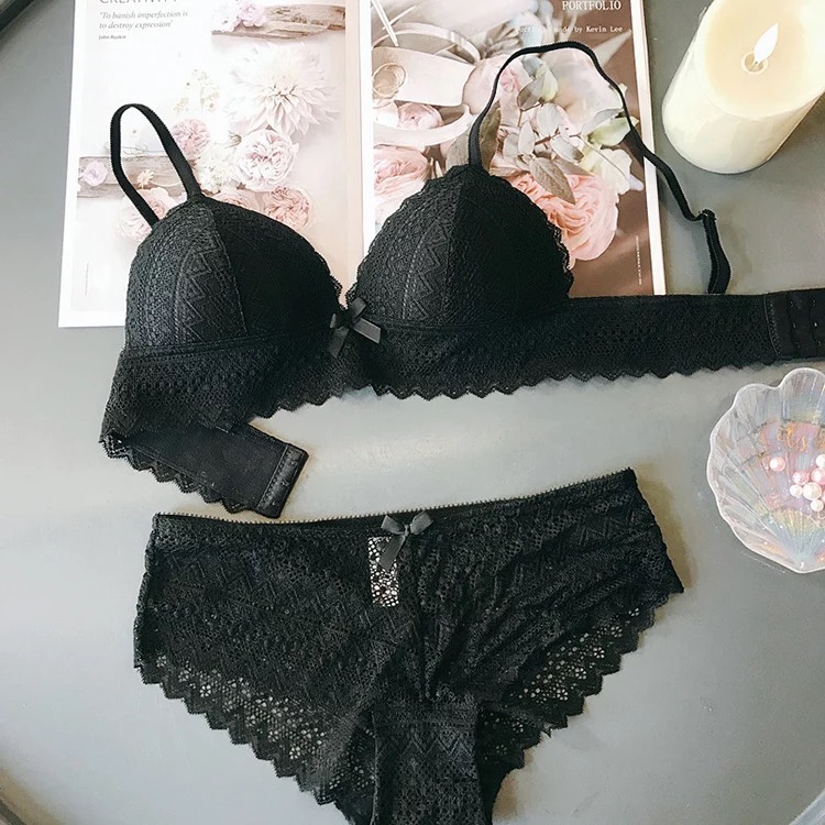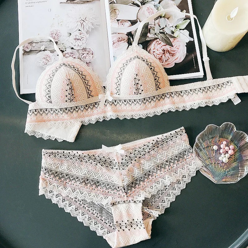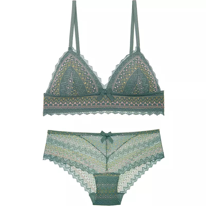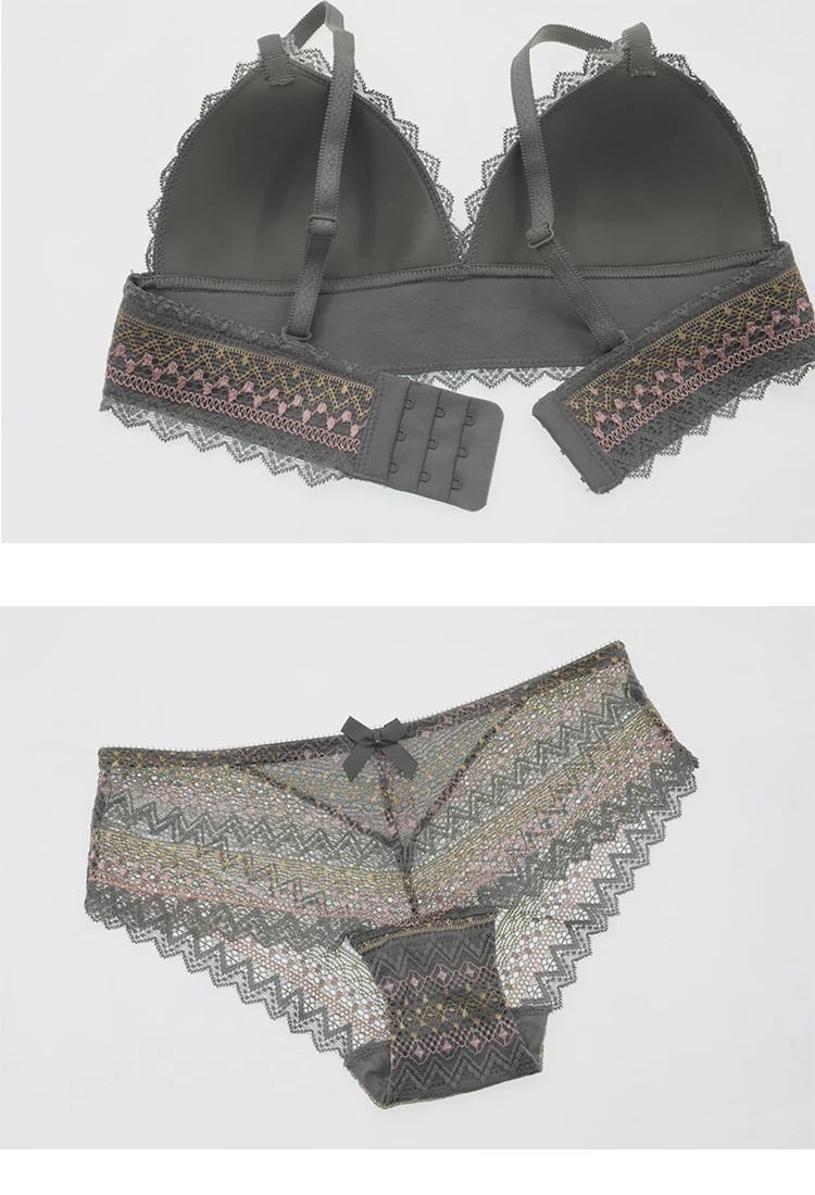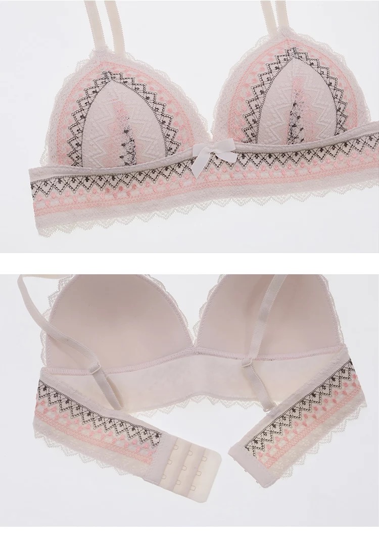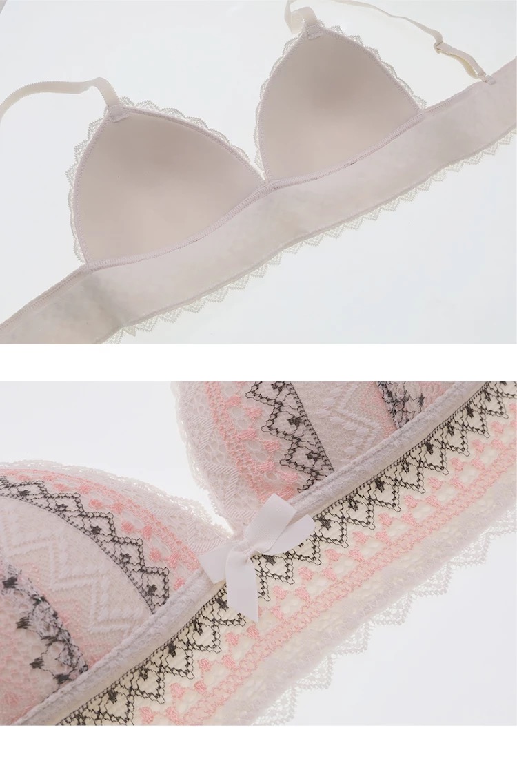 FREE SHIPPING: Retro Contrast Embroidery Brassiere Sexy Push-up Bra And Panty Lingerie Set