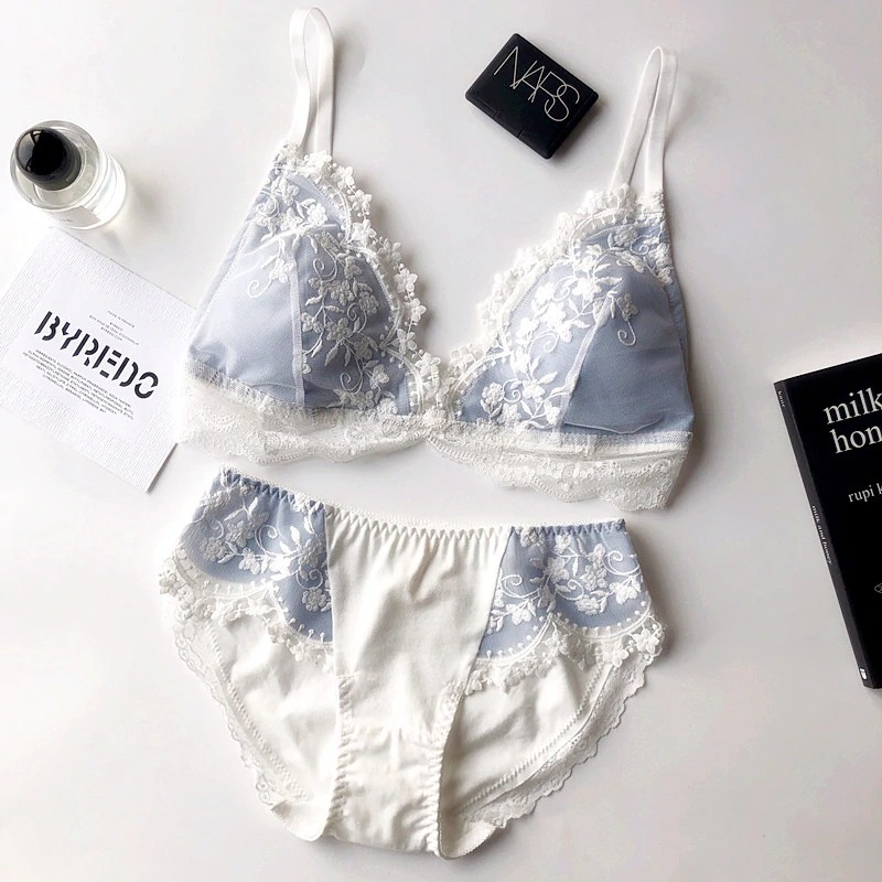 FREE SHIPPING: Japanese Lolita Cute Embroidery Lace Side Brassiere Sexy Bra And Panty Lingerie Set