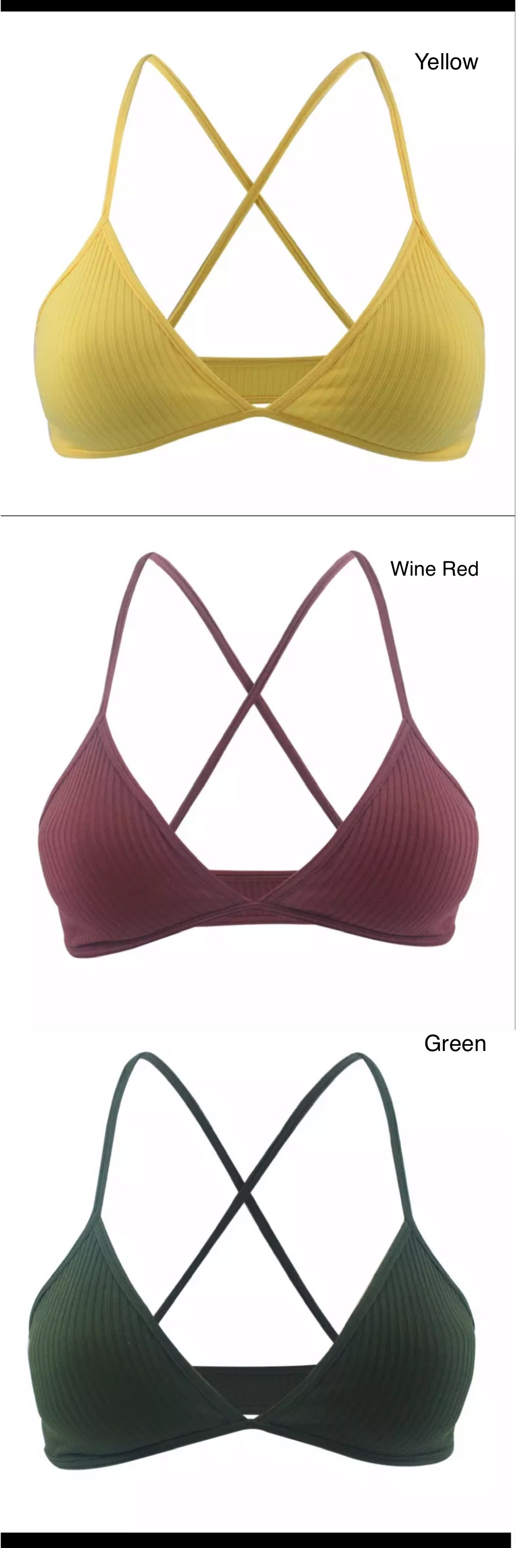 FREE SHIPPING: Sexy Ribbed Cross Back V Neck Bras Comfort Lady Cotton Bralette