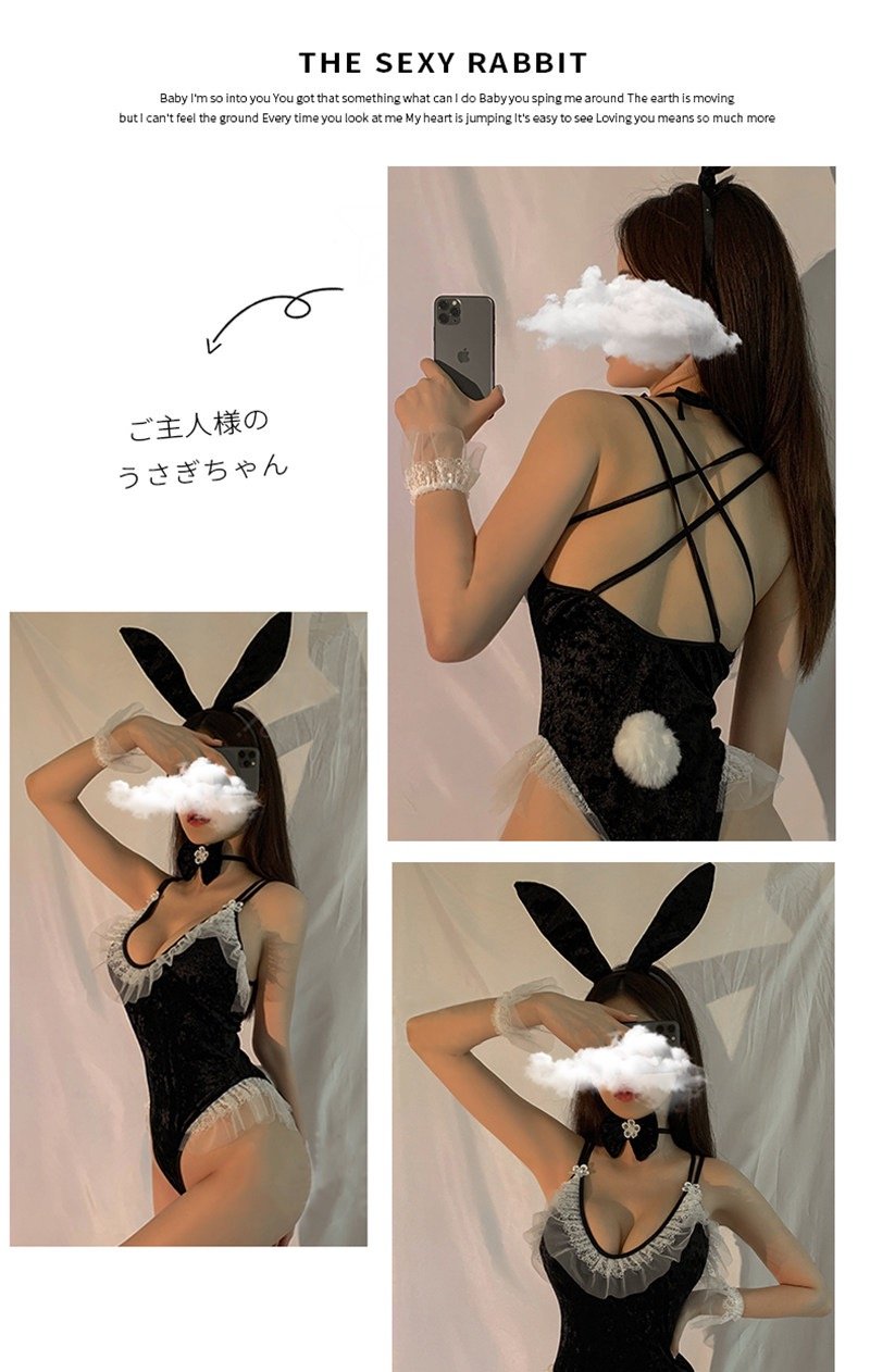 The package includes a bodysuit + bow tie + rabbit headband + bracelet * 2