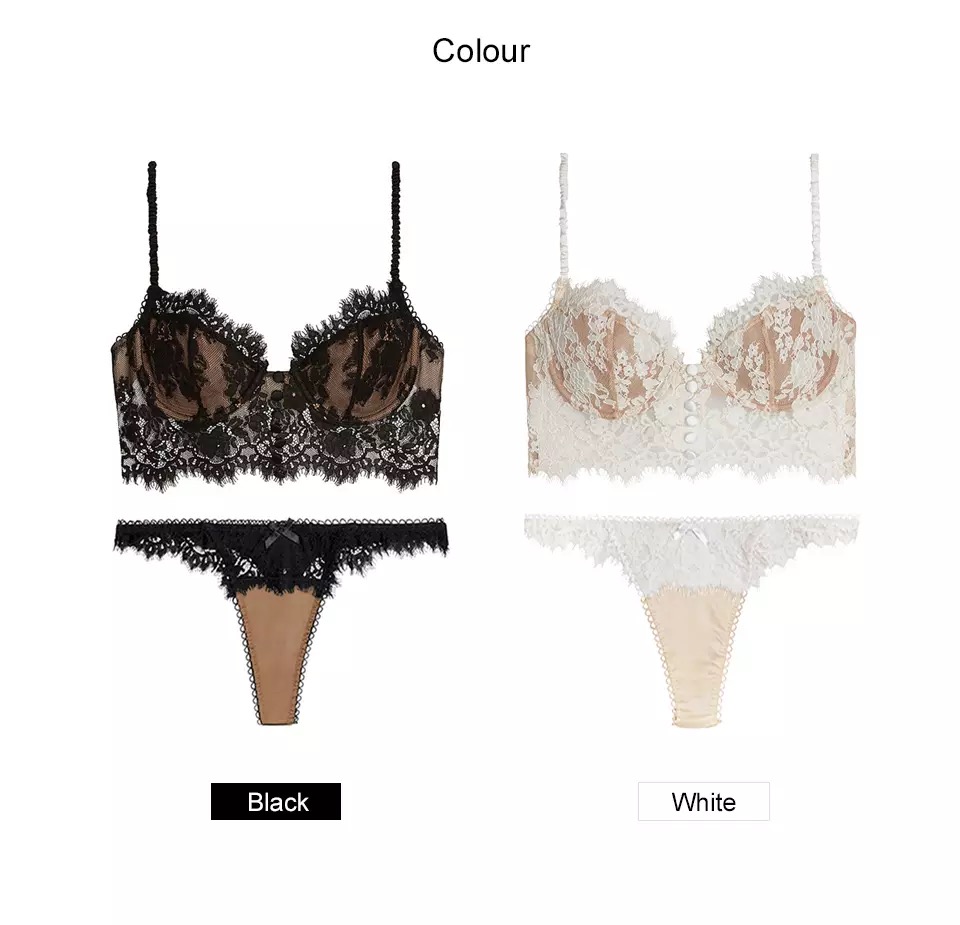 FREE SHIPPING: French Lace Embroidery Mesh Push Up Bra And Panties Lingerie Set