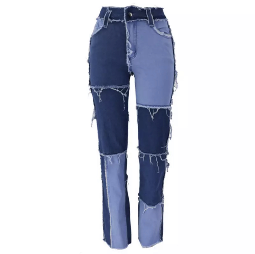 FREE SHIPPING: Harajuku Hip Hop Patchwork High waist Hip hop straight Trousers Jeans