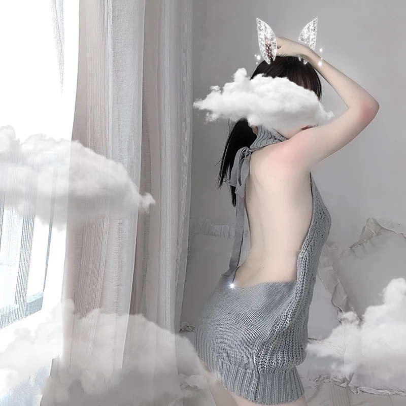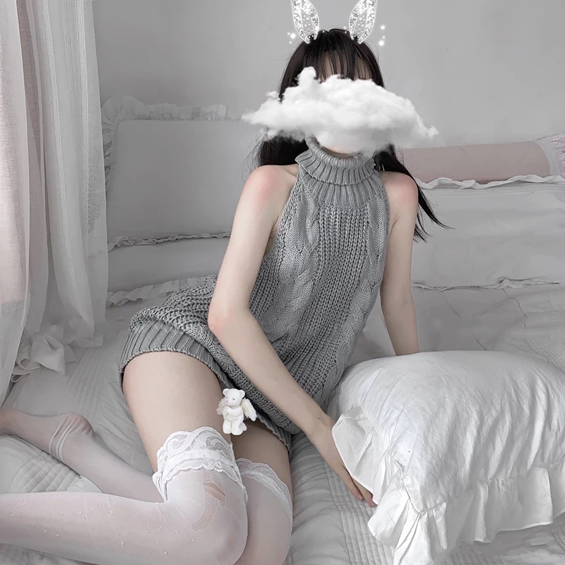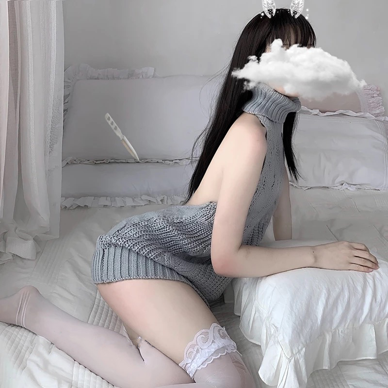 FREE SHIPPING: Sexy Grey Backless Sweaters Turtleneck Sleeveless Cosplay Costumes Japanese Knitted And Pullovers