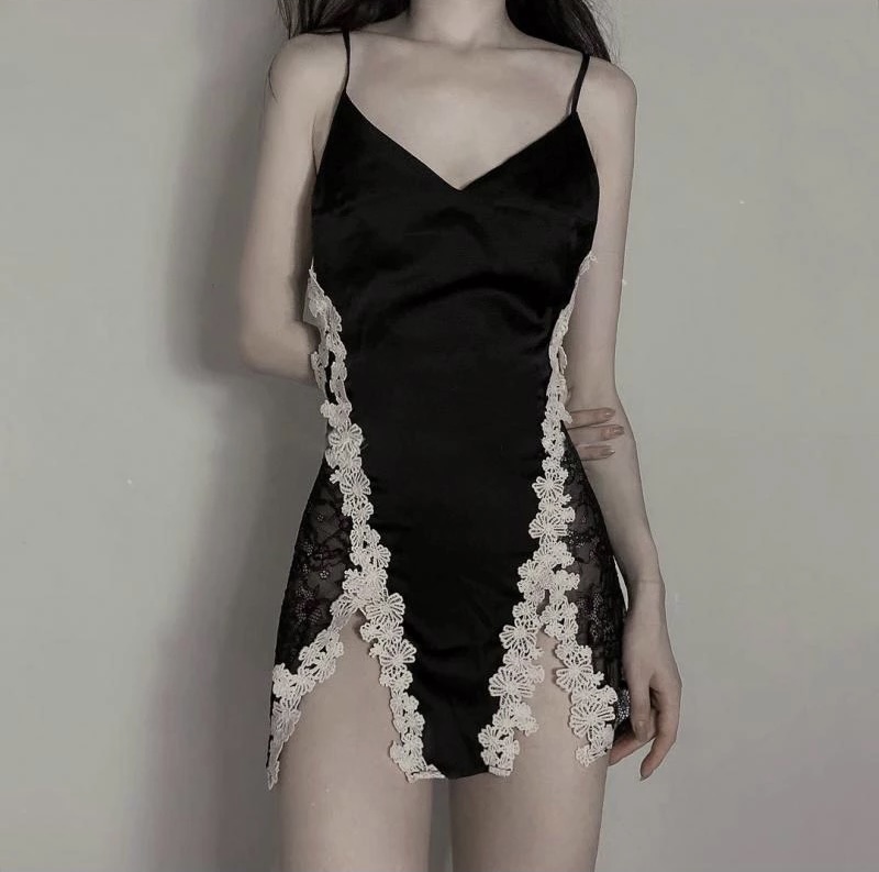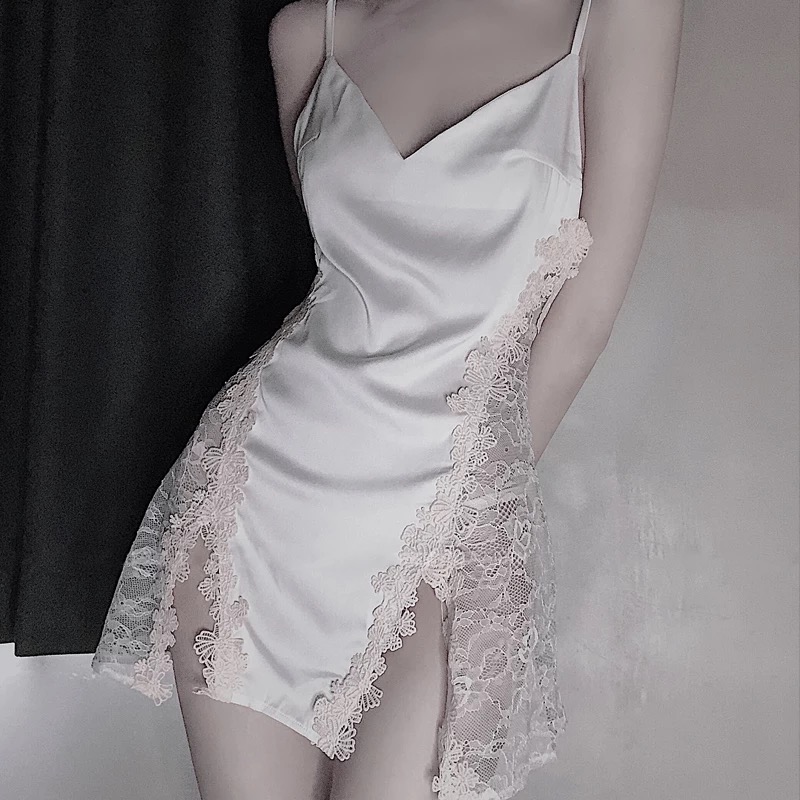 FREE SHIPPING: Silk Nightgown Lace Lingerie Sleepwear Babydoll Nightwear Dress