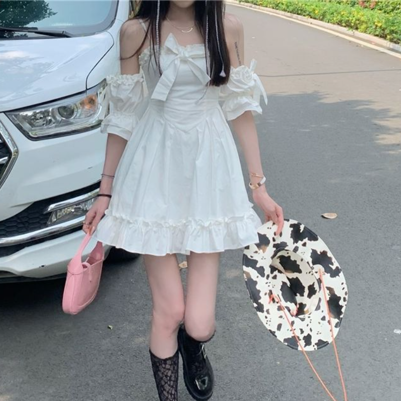 FREE SHIPPING: Sweet Off Shoulder Bow Ruffle Kawaii Fairy Strap Princess Dress