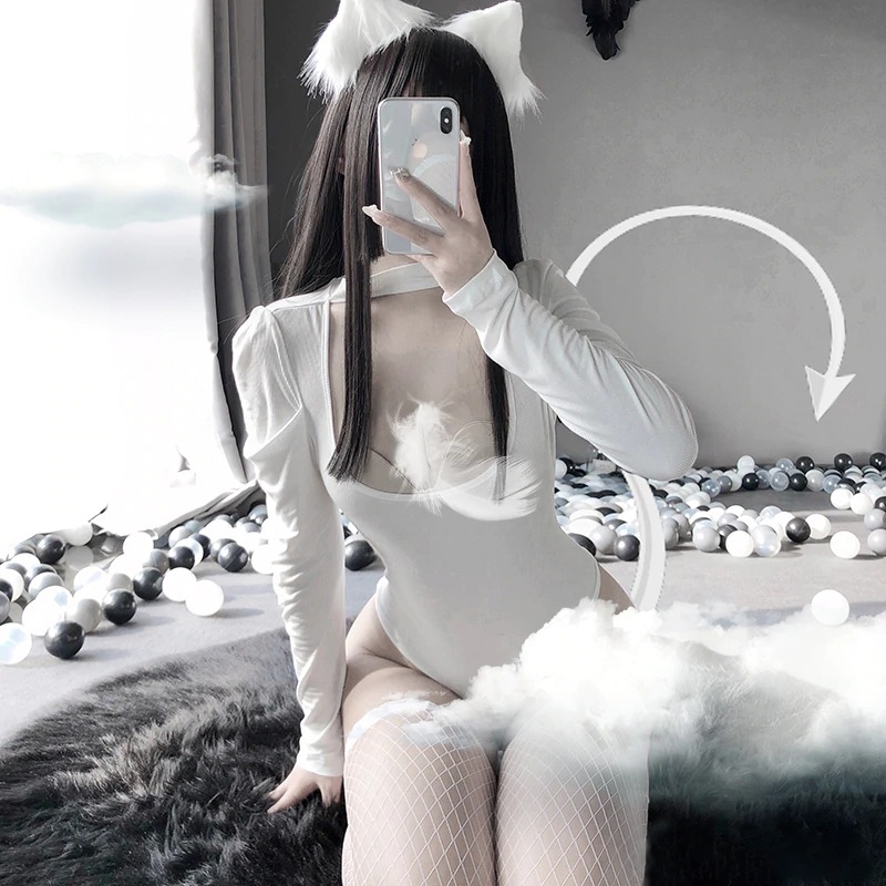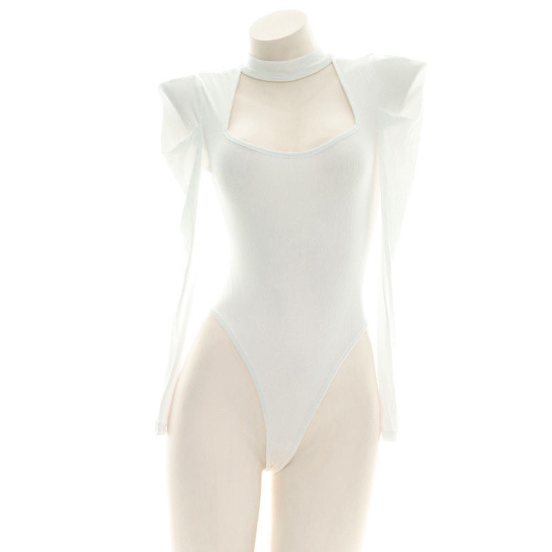 FREE SHIPPING: Sexy Casual Bodysuit Long Sleeve Hollow Out Chest Jumpsuit Japanese Fitness Rompers