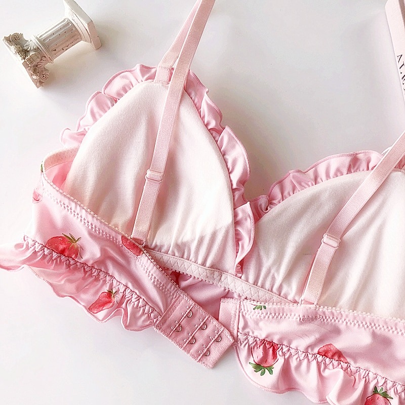 FREE SHIPPING: Japanese Lolita Cute Strawberry Lace Side Brassiere Sexy Bra And Panty Lingerie Set