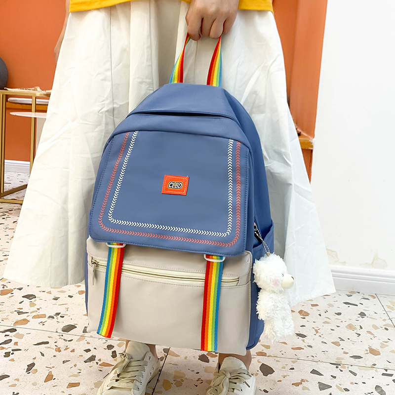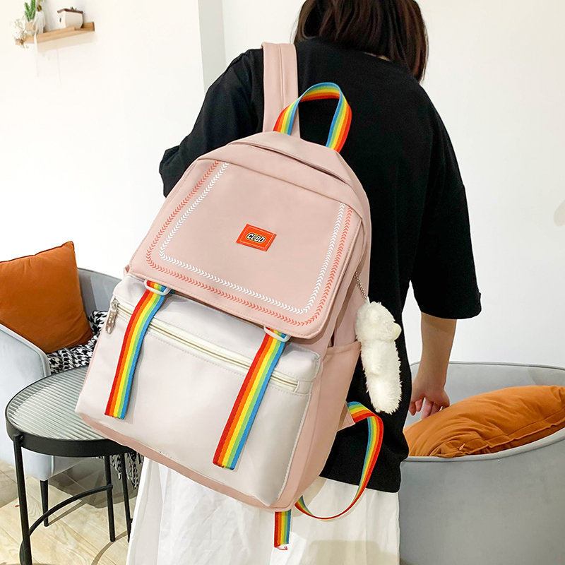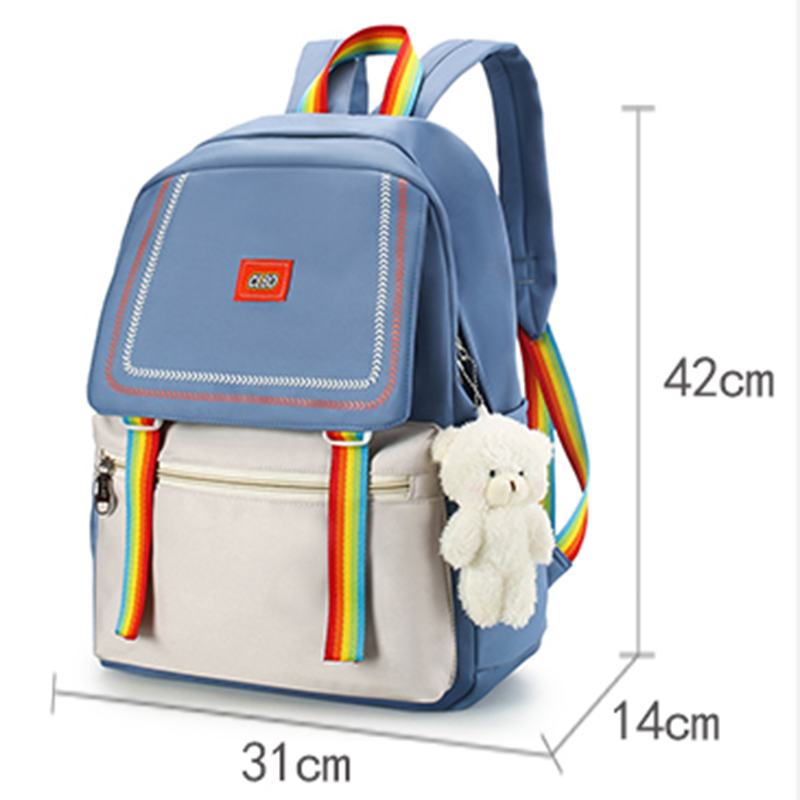FREE SHIPPING: Harajuku Rainbow Ribbon Design School Bag Backpack With Bear Pendant