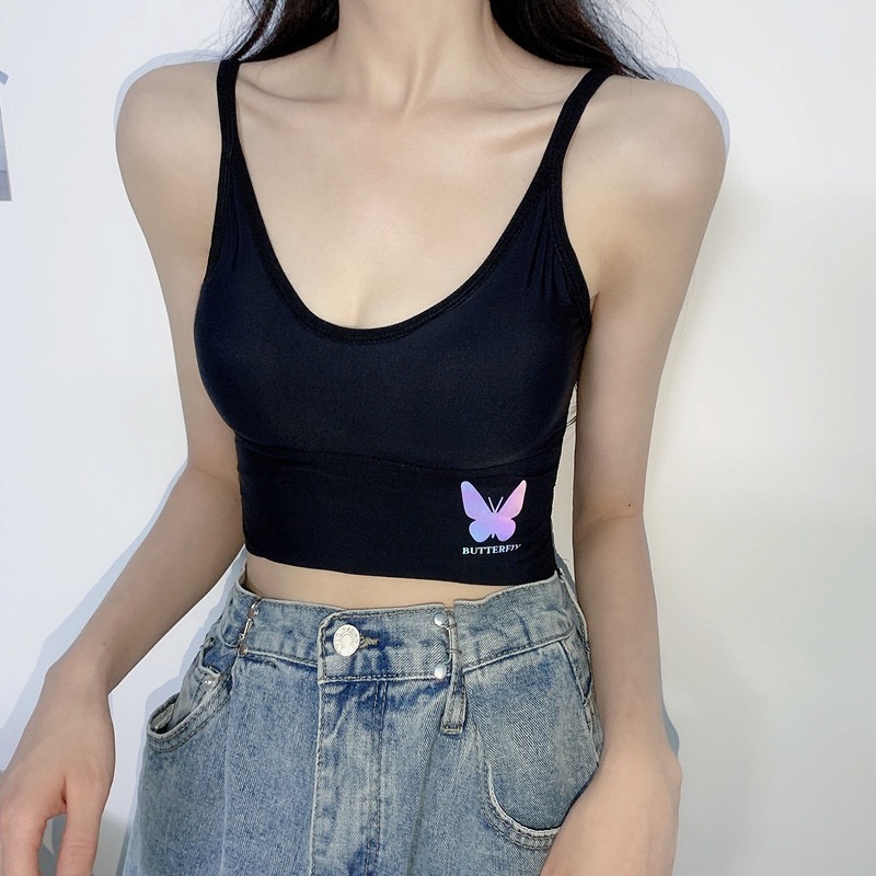 FREE SHIPPING: Butterfly Print Sexy Elegant Sleeveless Camisole V-Neck Tank Crop Top