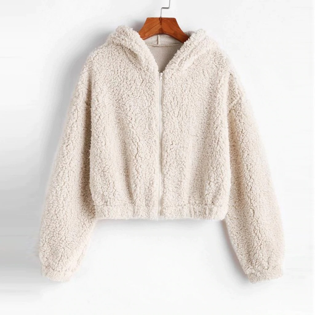 FREE SHIPPING: Harajuku Cute Fluffy Faux Lamb Fur Hoodie Pullover Plush Coat Winter