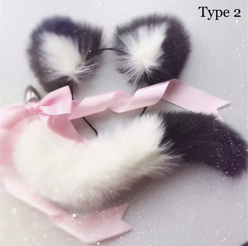 FREE SHIPPING: Harajuku Cute Cat Ears Headbands Fox Tail Cosplay Costumes Sets