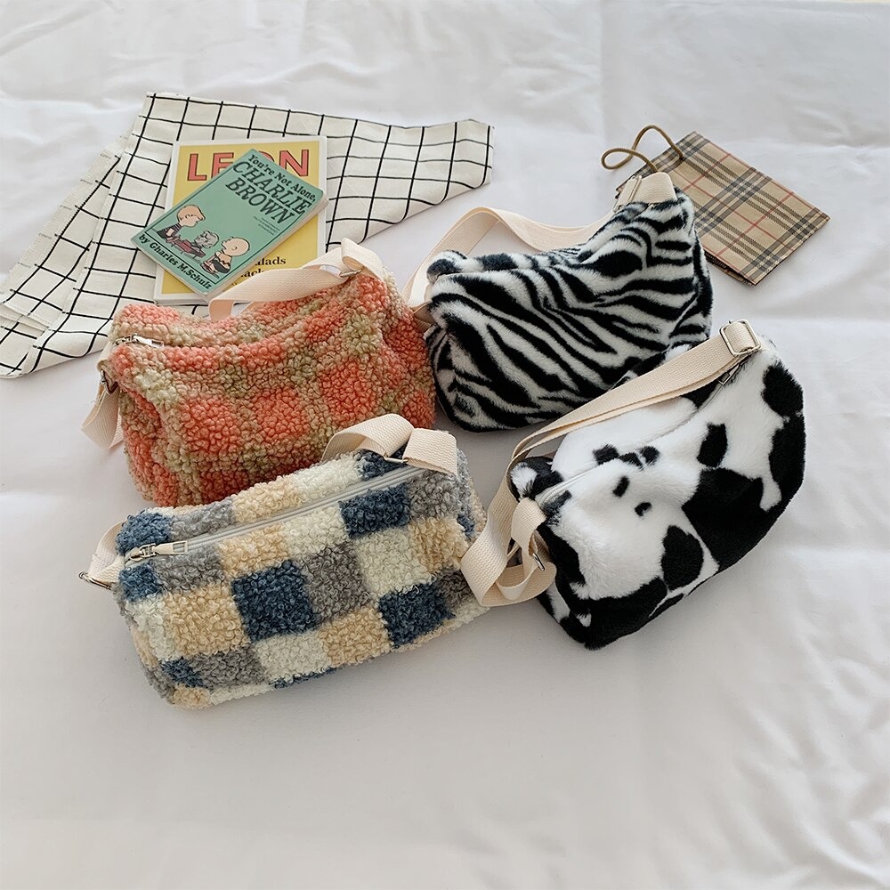 FREE SHIPPING: Cute Soft Fur Plush Zebra Handbag Purses
