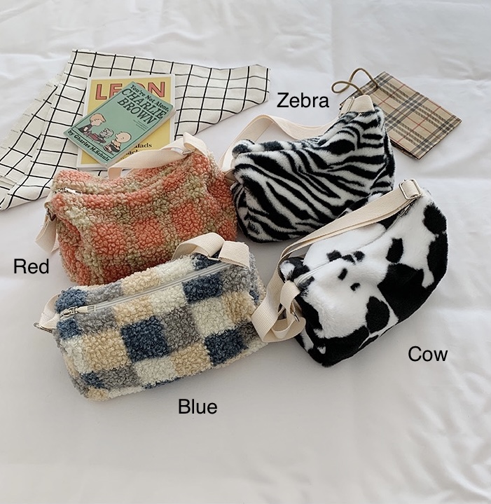 Material: Polyester" Colour: Blue, Pink, Cow, Zebra" Size: 30x12x18cm" Shoulder strap: max 100cm/39.37"