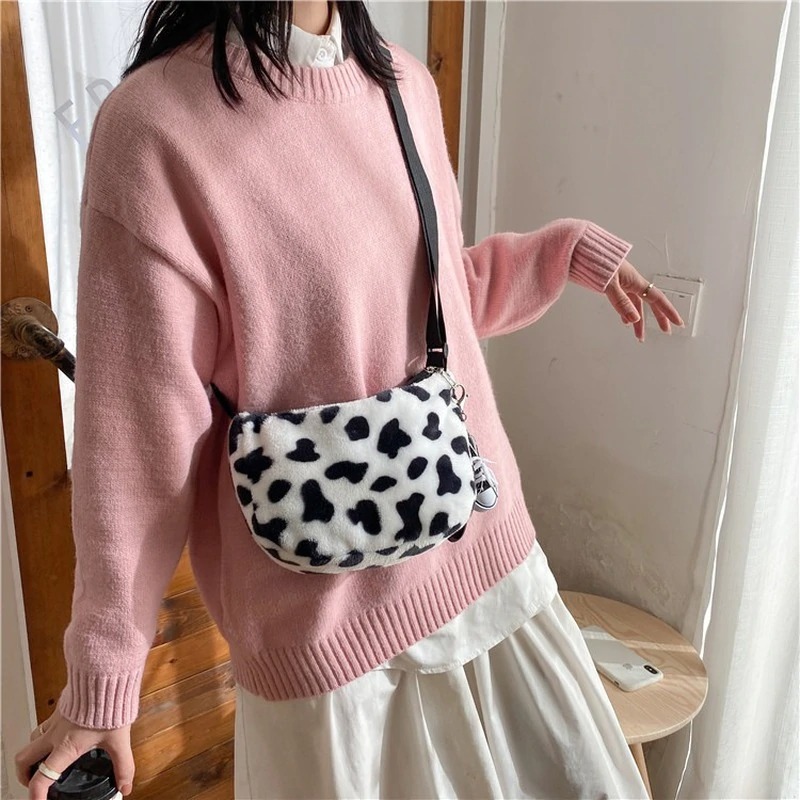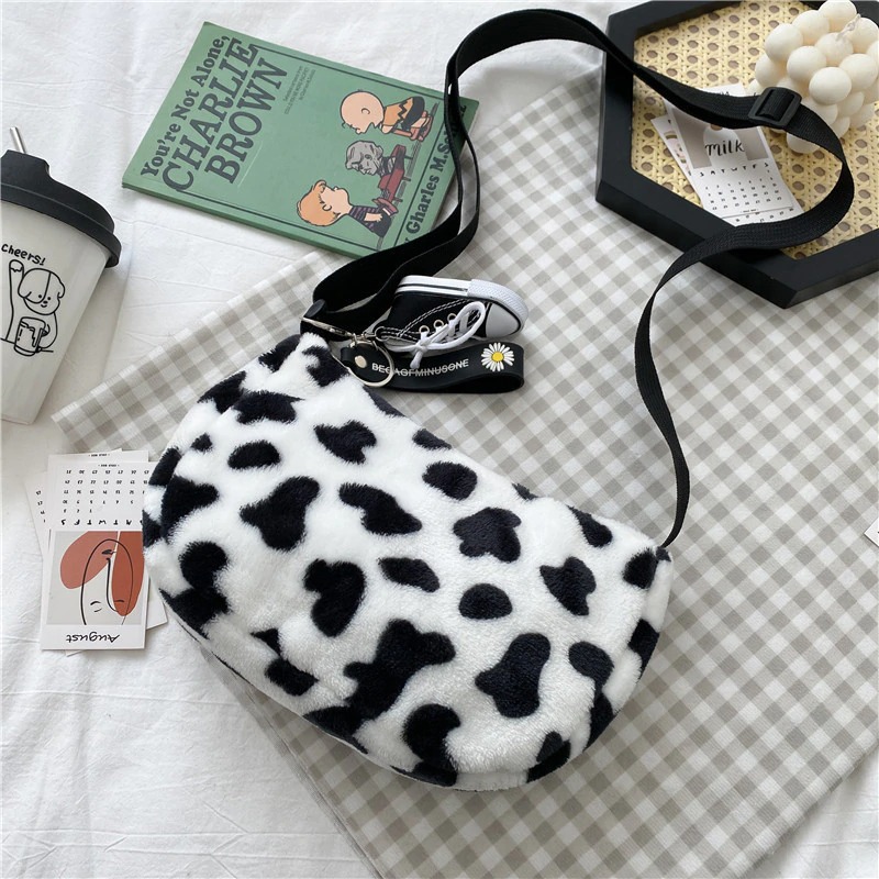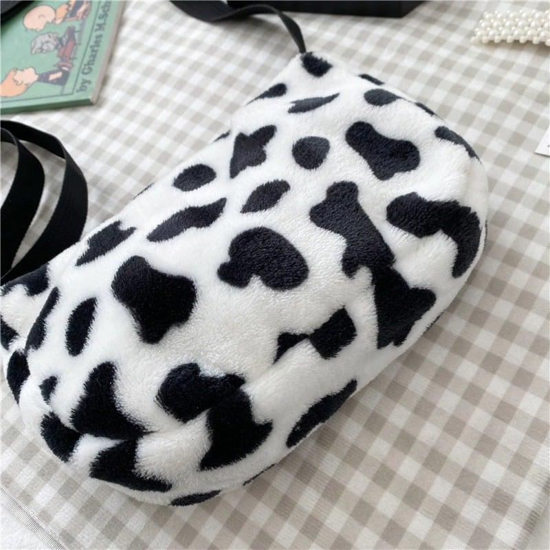 FREE SHIPPING: Mini Plush Cow Print Shoulder Crossbody Tote Bag