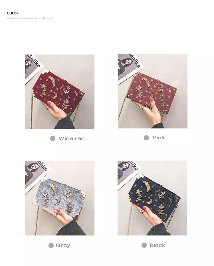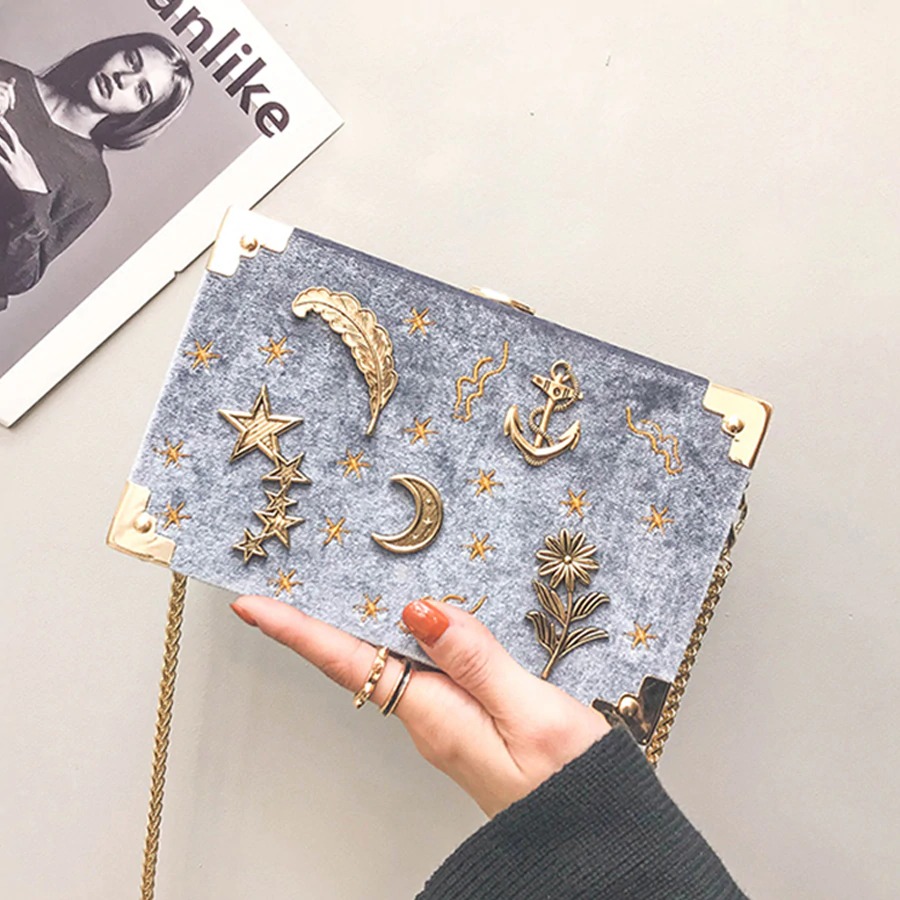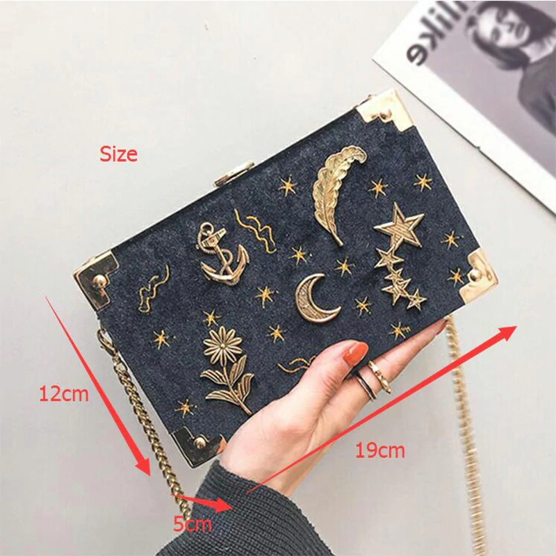 FREE SHIPPING: Star Moon Metal Box Shape Clutch Shoulder Messenger Bag