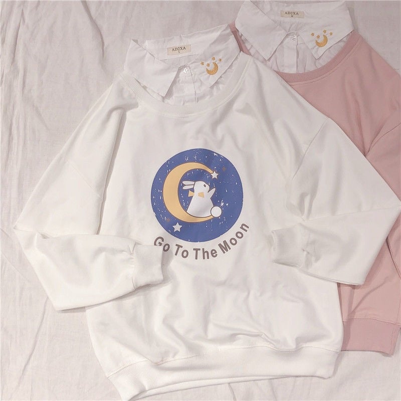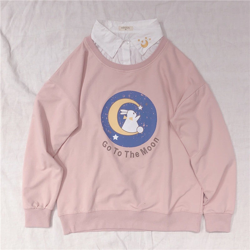FREE SHIPPING: Harajuku Sweet Cartoon Fake Two Pieces Sweater Pullover