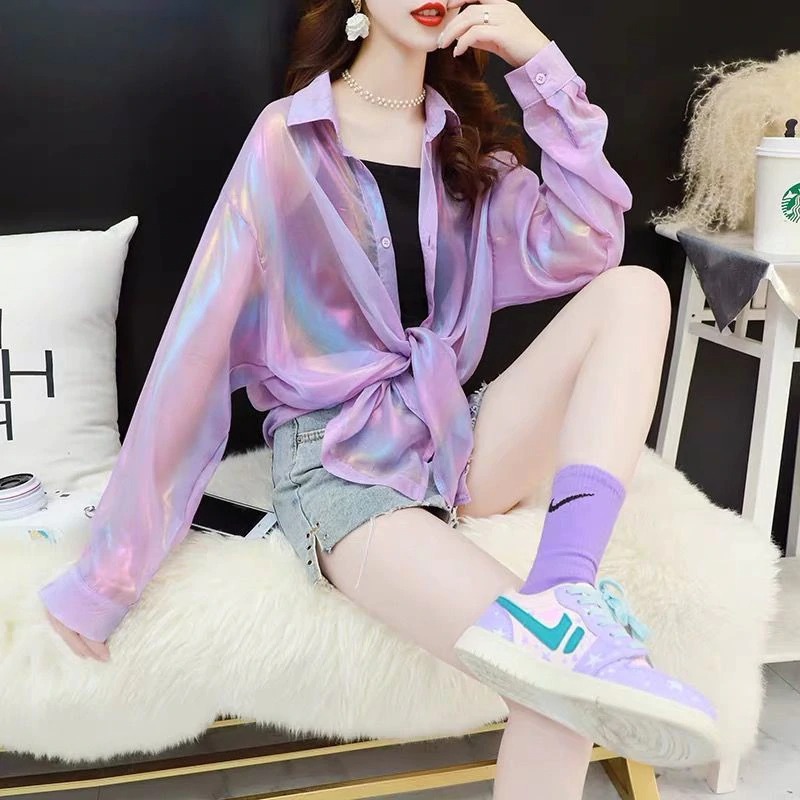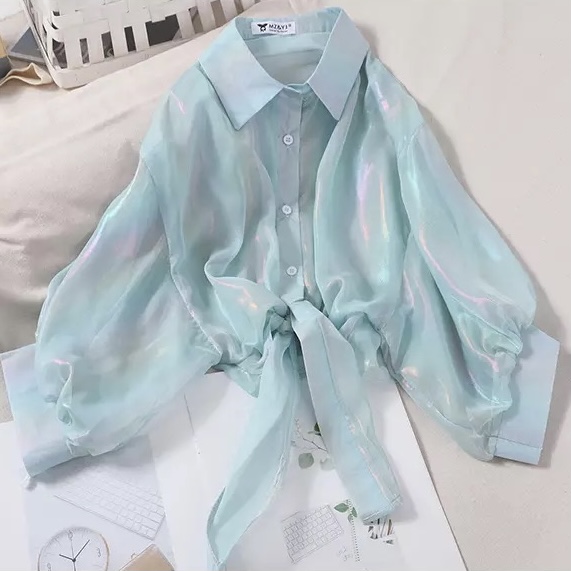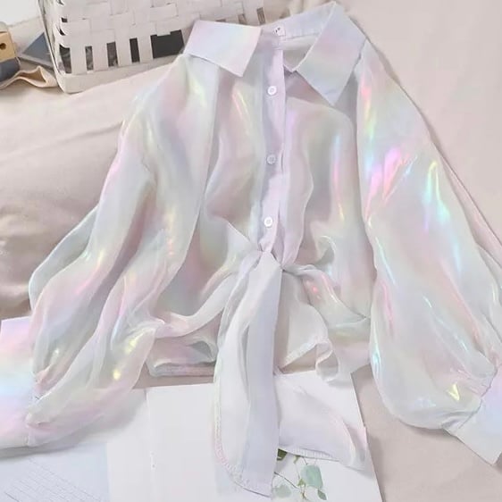 FREE SHIPPING: Half Sleeve Transparent Shining Sparkles Blouse Shirt