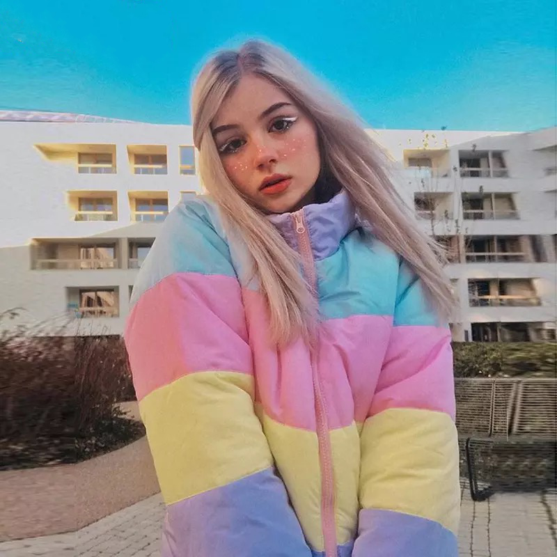 FREE SHIPPING: Japanese Harajuku Pastel Rainbow Puffer Jacket Thick Warm Padded Coats Winter