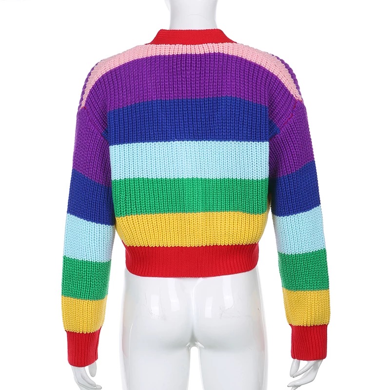 FREE SHIPPING: Preppy Style Cute Rainbow Stripe Knit 90s Cardigan Knitwear Sweater