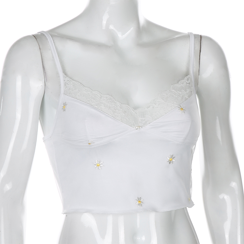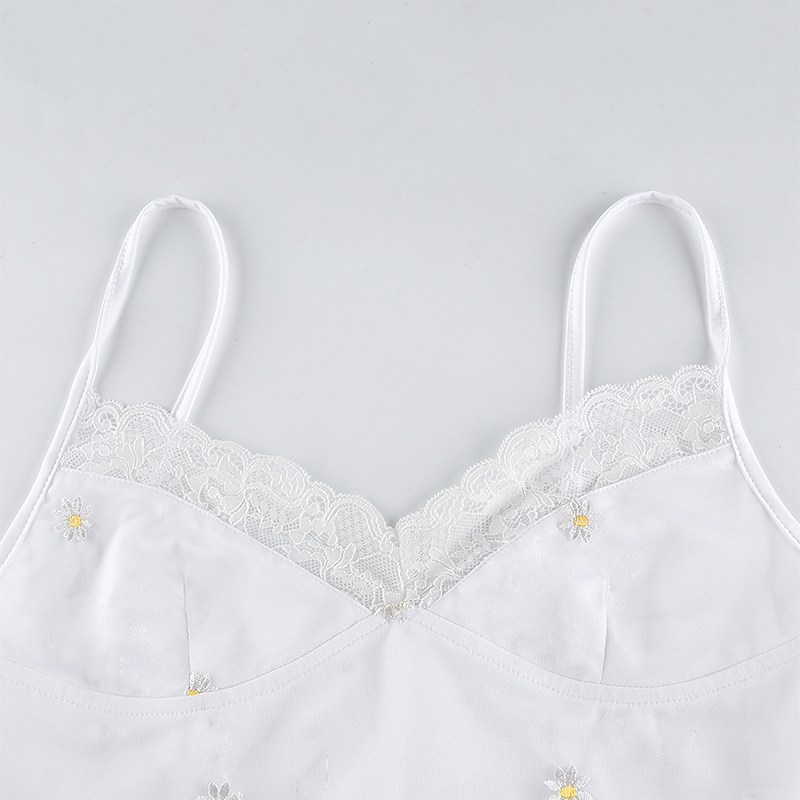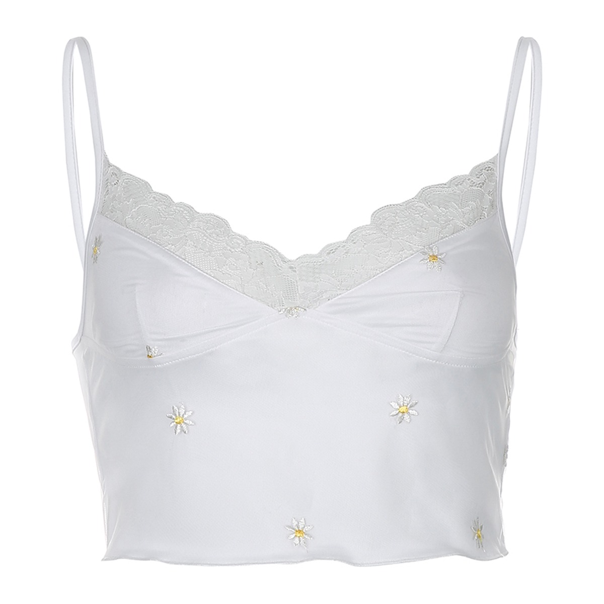 FREE SHIPPING: Cute Floral Lace Sexy Sleeveless Spaghetti Strap Top Summer Printed Backless Cami Crop Top