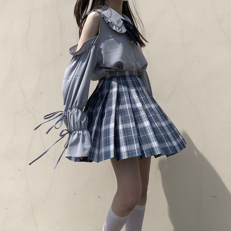 FREE SHIPPING: Sweet Lolita Style Off Shoulder Peter Pan Collar Lovely Solid Long Lantern Sleeve Bow Lace Up Blouse Top