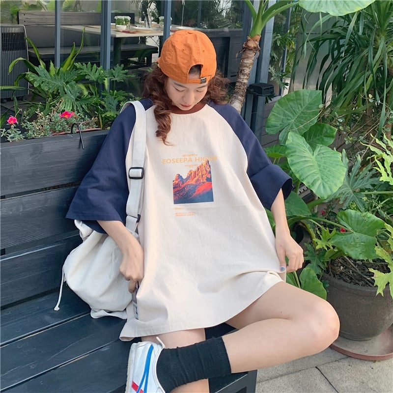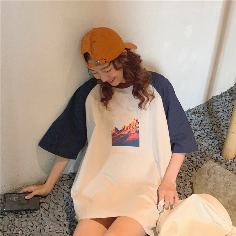 FREE SHIPPING: Korean Preppy Style Kawaii Long Patchwork Graphic Loose T-Shirt