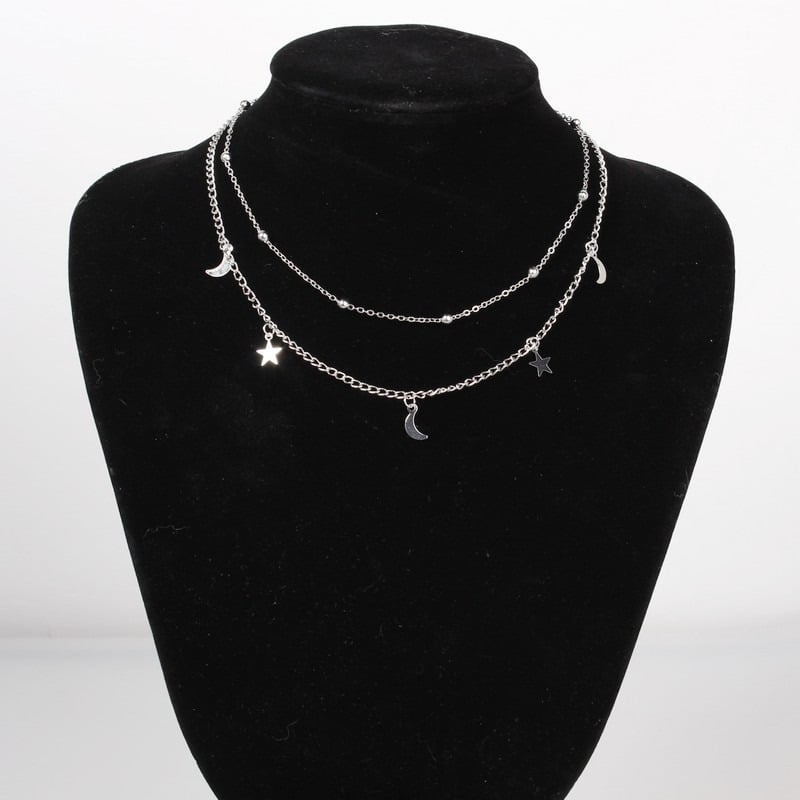 FREE SHIPPING: Moon Star Horn Crescent Double Chain Choker Necklace