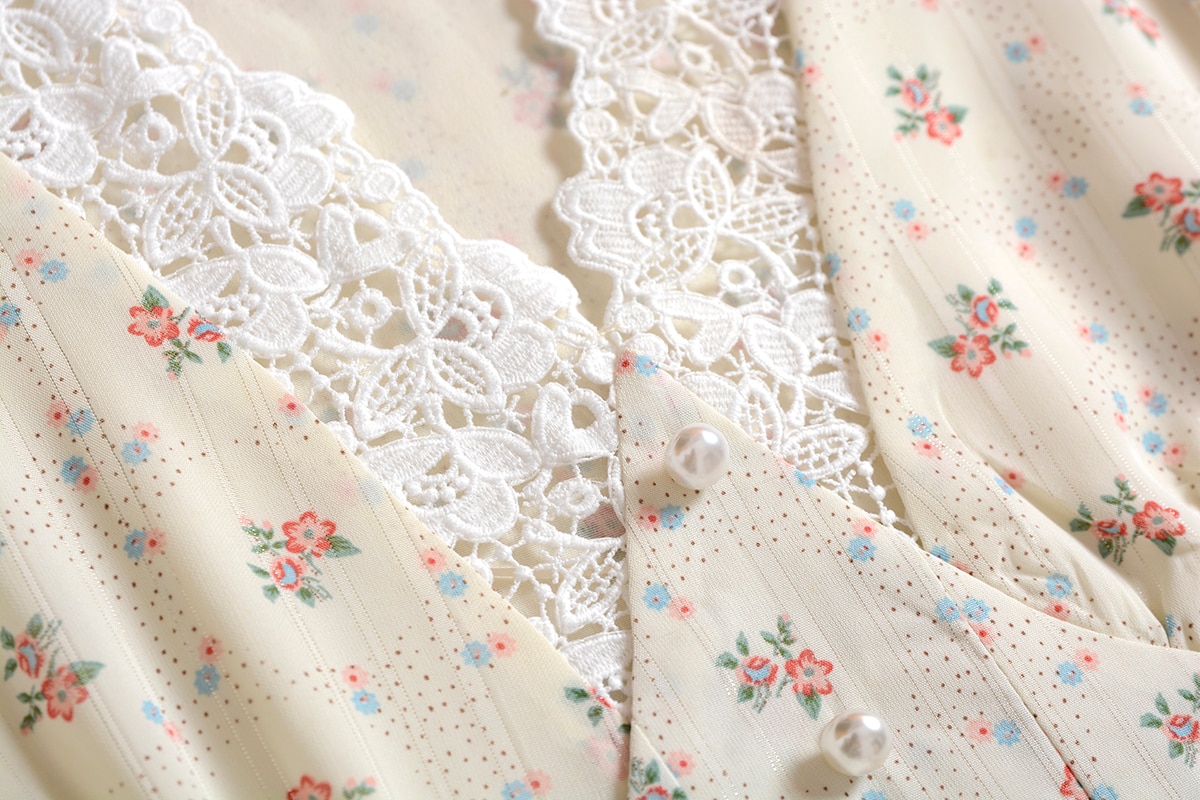 FREE SHIPPING: Vintage Lace Chiffon Puff Sleeve Floral Dress